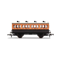 LSWR 1st Class 4 Door 4 wheel coach. Oil lamps + step boards 123 - With Lights