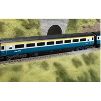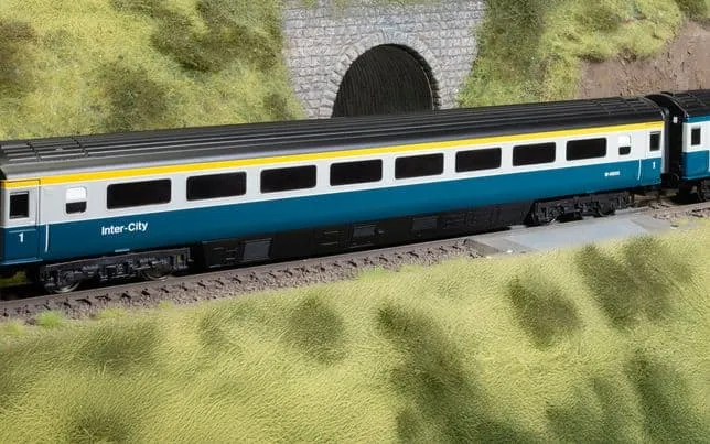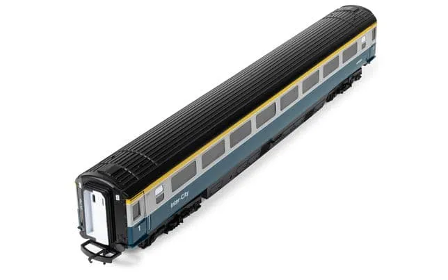 This First Open FO InterCity Mk3 coach is an ideal coach to add to the B.R. High-Speed Train Set to increase the rake of coaches between the two Class43 Diesels. Mk3 coaches entered service in 1975 along with the Class 43 forming the iconic InterCity 125 trainset. After the HST Mk3 coach variant was introduced, further Mk3 coaches were introduced to the West Coast Mainline for use as part of locomotive-hauled trains. Whilst Mk3 stock is standard for HST units, the standard locomotive hauled stock is Mk3a. Mk3a stock differs from Mk3 stock due to the inclusion of buffers and a different electrical system that uses motor generator units in each coach to power air conditioning and other ancillaries. Mk3a stock was built until 1984, before 3B stock with improved seating and lighting was built from 1985 to 1988.
