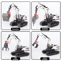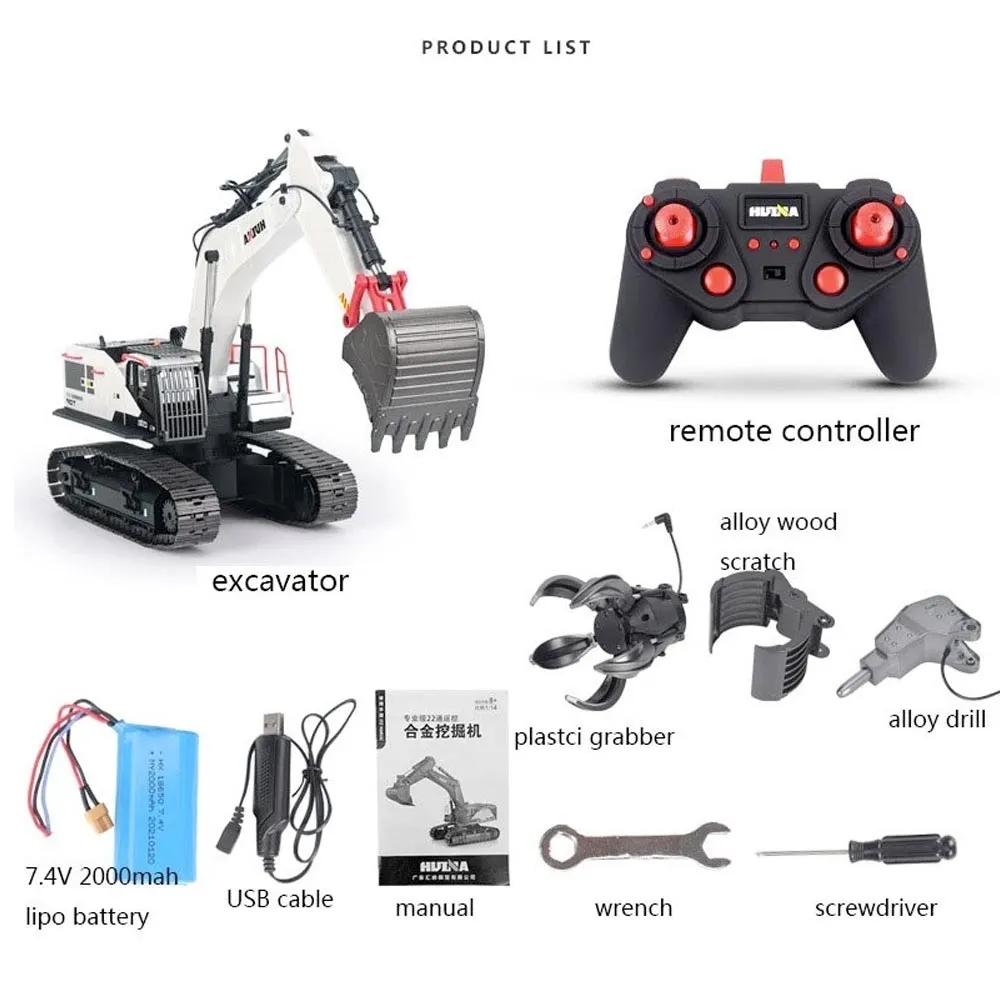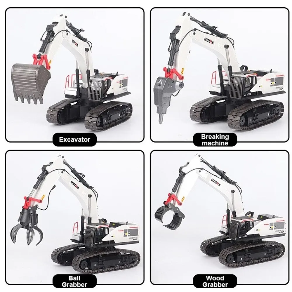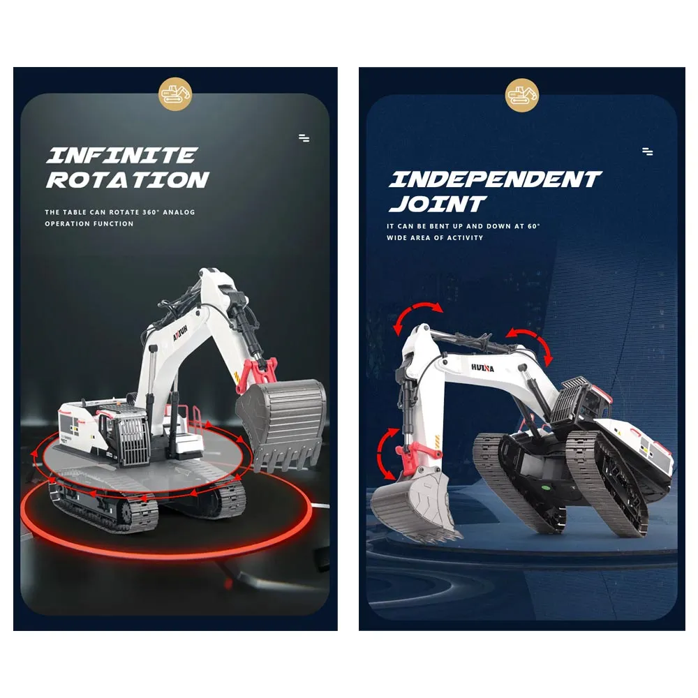 The small arm rise and down. The excavator bucket rise and down.Rotate 360 degrees.The driving cab with lights.