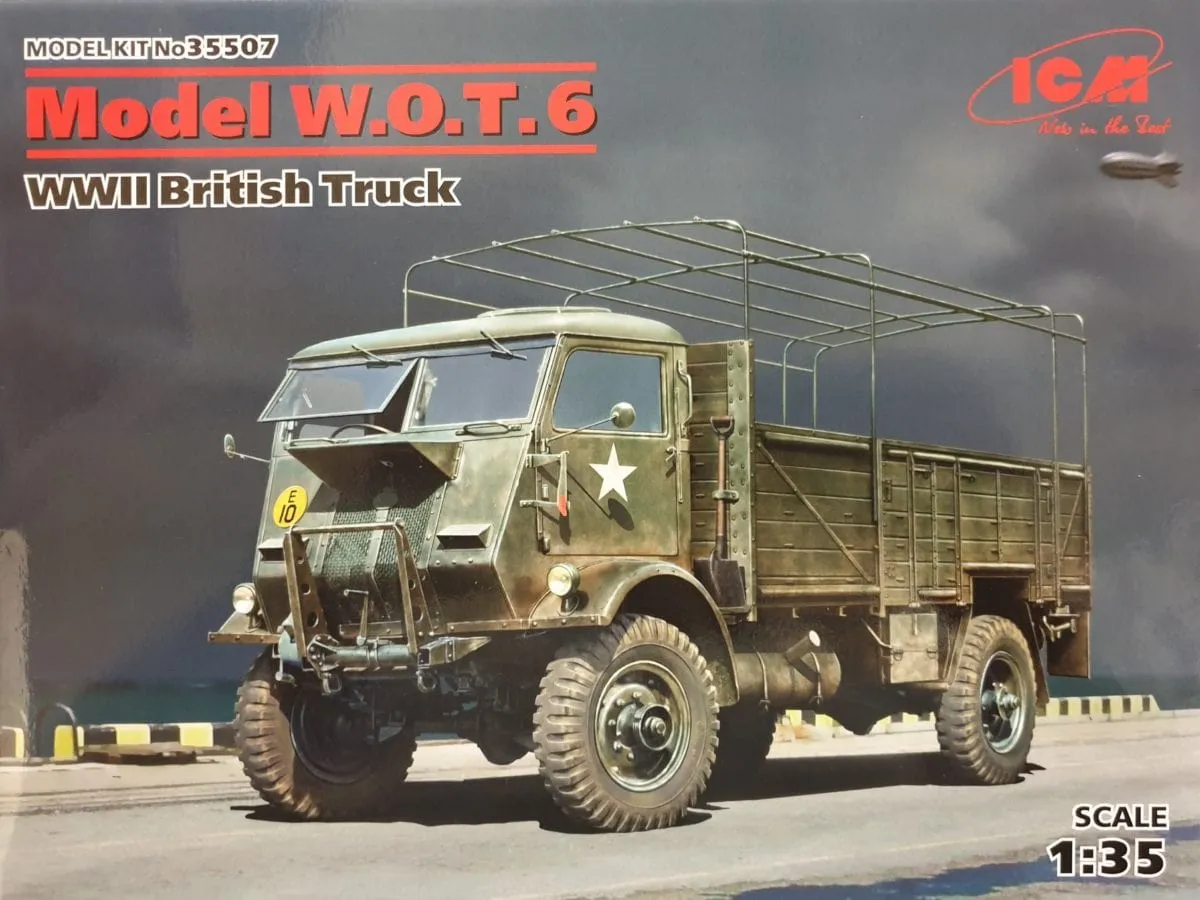 These trucks were produced with different types of bodies. ITEM NUMBER 35507 SCALE 1:35 DATE 18.01.2019 TIME PERIOD WW2 MARKINGS W.O.T. 6, France, Summer 1944. W.O.T. 6, Germany, May 1945. W.O.T. 6, Great Britain, Summer 1945. W.O.T. 6, Malaya, Summer 1945. MODEL SIZE (LENGTH X HEIGHT) 180 x 90 mm BOX SIZE 294 x 230 x 58 mm NUMBER OF DETAILS 260