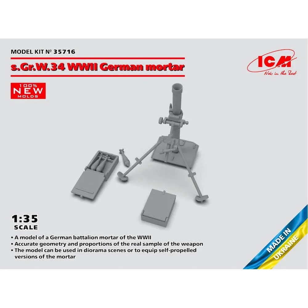 Short DescriptionICM 1/35 s.Gr.W.34 WWII German Mortar # 35716