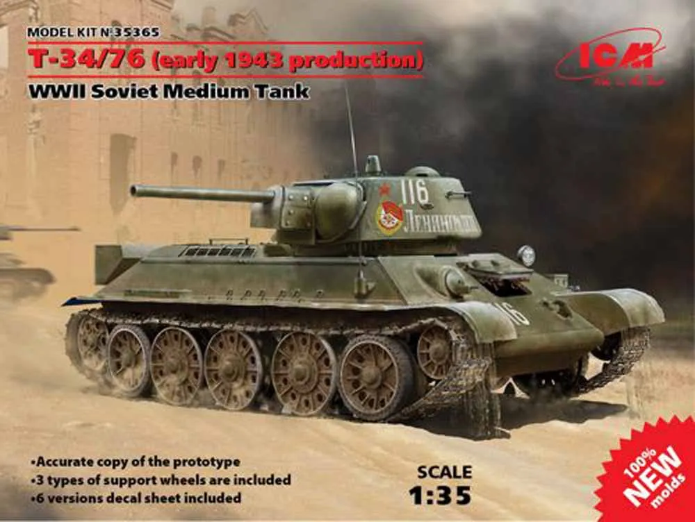 | Short Description | ICM 1/35 Russian T-34/76 (early 1943 production), WWII Soviet Medium Tank # 35365 |