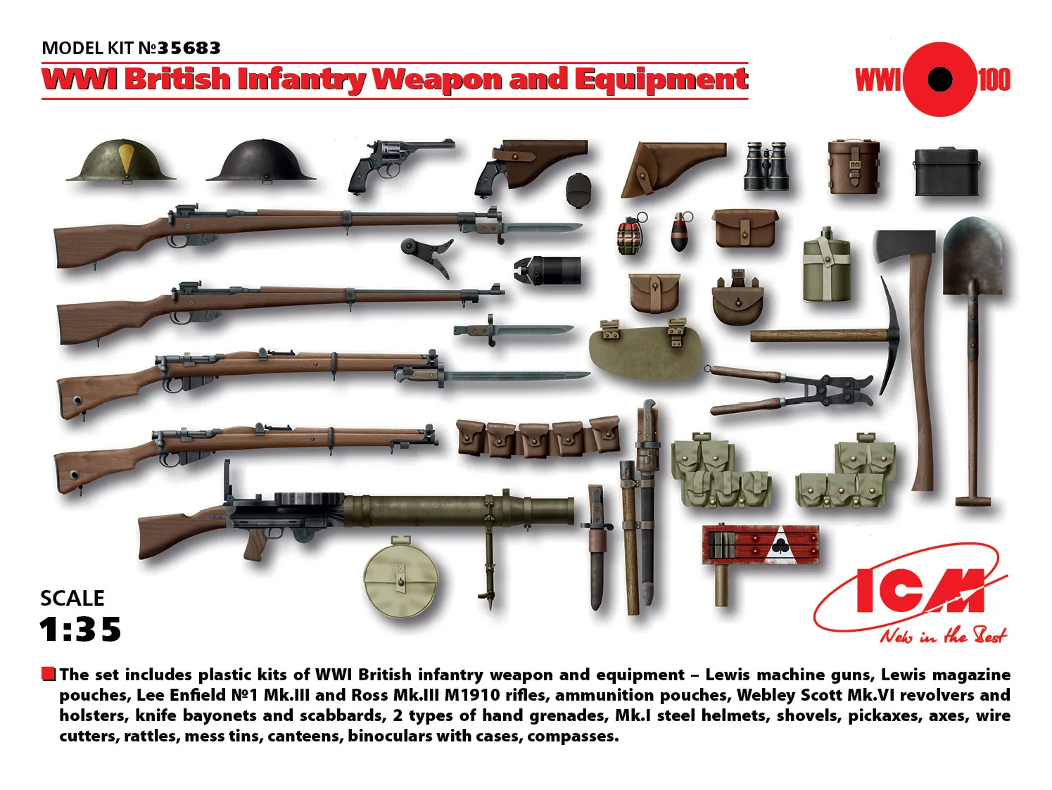 | Short Description | ICM 1/35 WWI British Infantry Weapon and Equipment # 35683 - Model Diorama Accessories |
