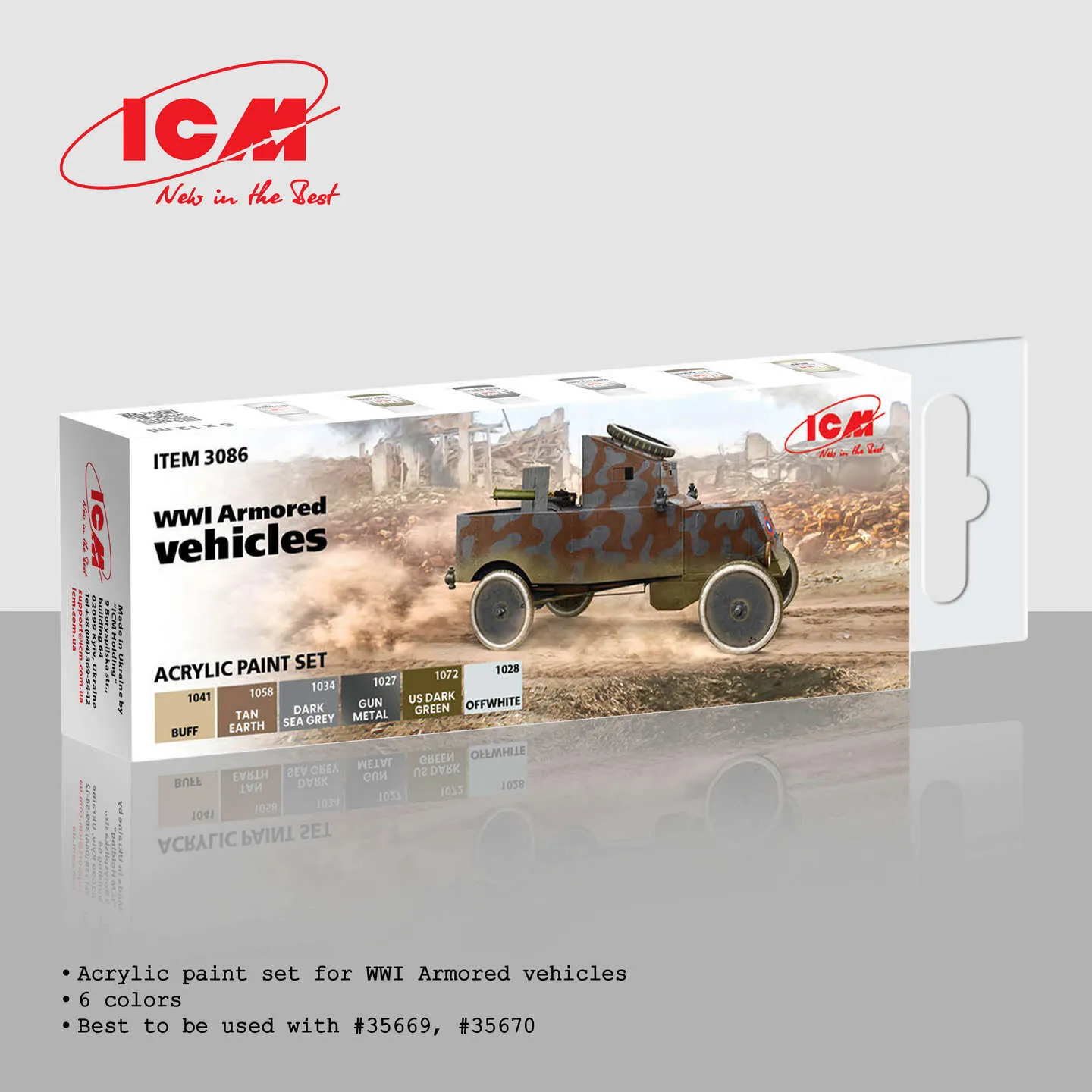ICM Acrylic Paint Set: WWI Armored vehicles - 6 Colours