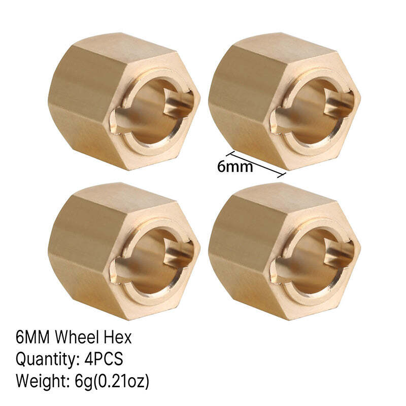 INJORA 7mm Brass Wheel Hex Hub Extenders for FMS FCX24 FCX18 (FCX24-07) - 4mm(+0mm)