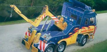 This large tractor is representative of many trucks used in the USA. Equipped with powerful engines and very large fuel tanks, these vehicles travel