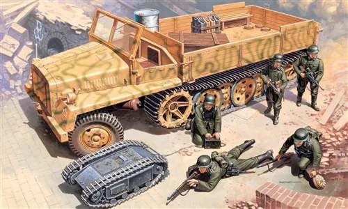 This small half-track vehicle with platform designed to accommodate the 2 CM. FLAK 30 antiaircraft cannon, was built for the German army at the beginning of the 2nd World War. Its purpose was to protect tank divisions against the threat of enemy fighter-bombers, in addition to offering direct firing support for the infantry. The half-track vehicle offered excellent off-road performance and was very sturdy indeed, as abundantly demonstrated during the Russian Campaign carried out under highly exacting conditions due to the almost total absence of roads, and very severe weather.