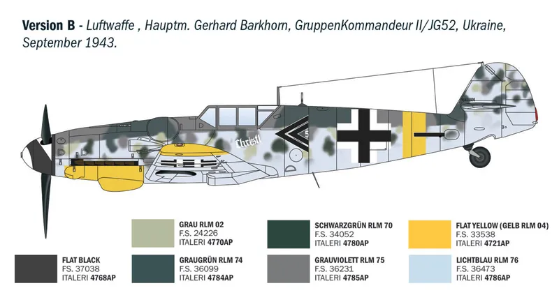 The Messerschmitt Bf 109 monoplane fighter is, without a doubt, one of the most famous fighter aircraft of the Second World War and can be considered one of the symbols of the Luftwaffe. Throughout the conflict, its engines and armament were regularly improved to ensure it remained capable of competing with more modern and faster aircraft. Along with the Focke-Wulf Fw 190, it formed the backbone of the Luftwaffe's fighter squadrons. The Bf 109 was flown by the most famous German aces, achieving a significant number of aerial victories. Among them, we can mention the pilots of the famous Jagdgeschwader 52 and the ace with the highest number of kills of the Second World War: Erich Hartmann.