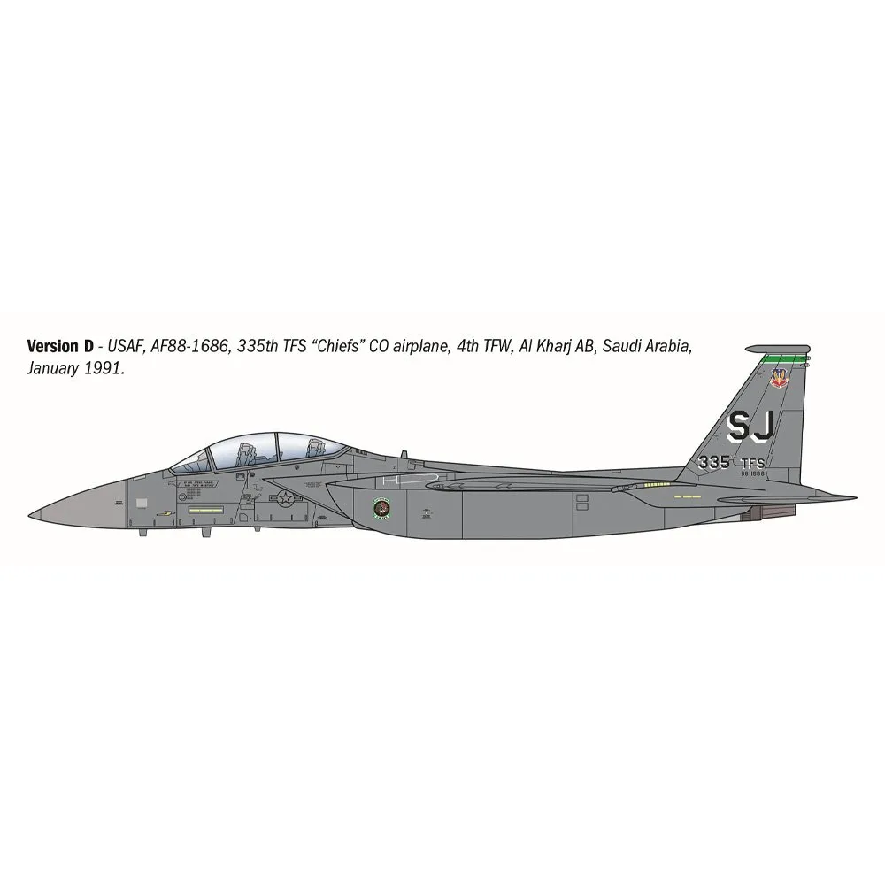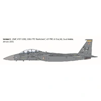 The McDonnell Douglas F-15 Eagle design was initiated in the 1970s to equip the United States Air Force fighter squadrons with an advanced and high-performance jet fighter. The effective and robust aerodynamically design lay-out led to production of the two-seat “all-weather” F-15E Strike Eagle fighter-bomber. Entering into service with the USAF in the late 1980s and replacing the outdated F-111, its operational roles included ground attack, bombing and interdiction missions. It retained the flight design characteristics of the original F-15 such as the two tail drifts, sturdy mid-wing and tandem two-seater cabin, in the rear of which was the Weapon Systems Officer. From this position the officer selected the aircraft’s route management, target tracking and electronic countermeasures. The F15-E was deployed to numerous operational theatres such as the Desert Shield and Desert Storm campaigns of the early 1990s.