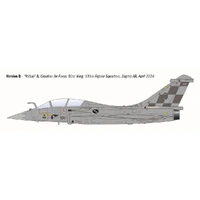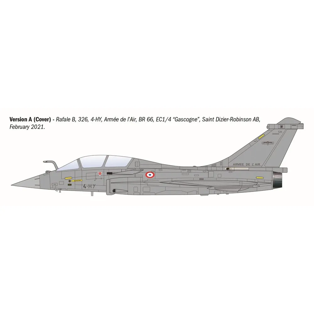 The Rafale B is the two-seat version of the French fighter aircraft, featuring a delta wing and canard foreplans, developed by Dassault Aviation. An extremely versatile aircraft, it can carry out air-superiority, ground-attack, reconnaissance, and electronic-warfare missions. The pair of Snecma M88 engines with afterburner provide the aircraft with significant performance, including a top speed exceeding Mach 1.8 and a good operational range. Its aerodynamic configuration also gives the aircraft outstanding manoeuvrability. The Rafale B can carry a wide range of weapons suitable for all types of missions, including air-to-air and air-to-surface missiles, as well as guided bombs. Its primary user is the French Air Force (Armée de l’Air), but it is also operated by the air forces of other countries such as Croatia and Greece.