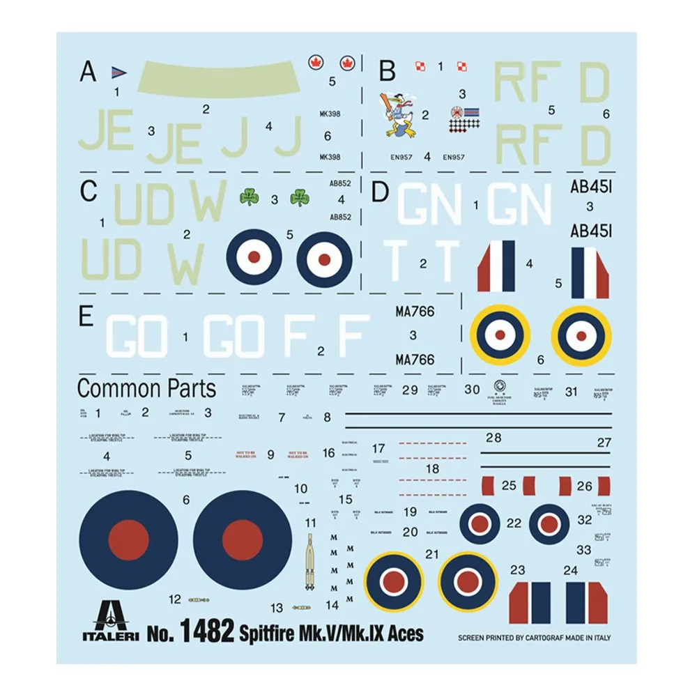 Italeri 1/72 Spitfire Mk.V/Mk.IX Aces w/Super Decal Sheet Plastic Model Kit