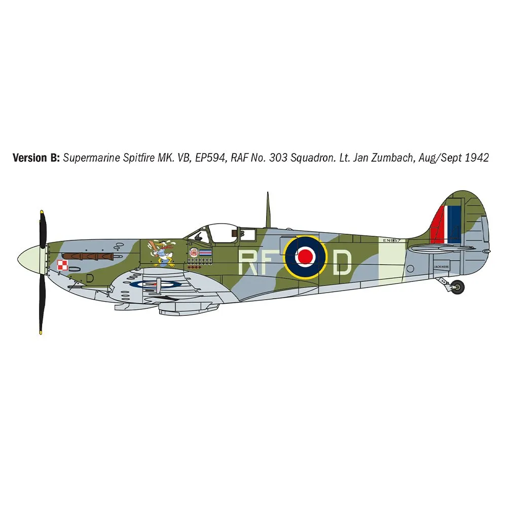 The Supermarine Spitfire fighter aircraft can undoubtedly be considered one of the most famous airplanes in the history of aviation and an icon of British aeronautical engineering. A single-engine, low-wing monoplane equipped with effective offensive armament, it formed—along with the Hawker Hurricane—the backbone of the Royal Air Force’s fighter units during the Battle of Britain against the German Luftwaffe. Throughout the war, in order to counter enemy technological advancements, the Spitfire underwent continuous development in both aerodynamic configuration and powerplant options. The Spitfire V, produced from 1941 and powered by the 1,440 hp Merlin engine, was widely distributed to operational units and later evolved into the Mk IX version. Flown by the most renowned aces of the British Royal Air Force, it achieved a significant number of aerial victories.