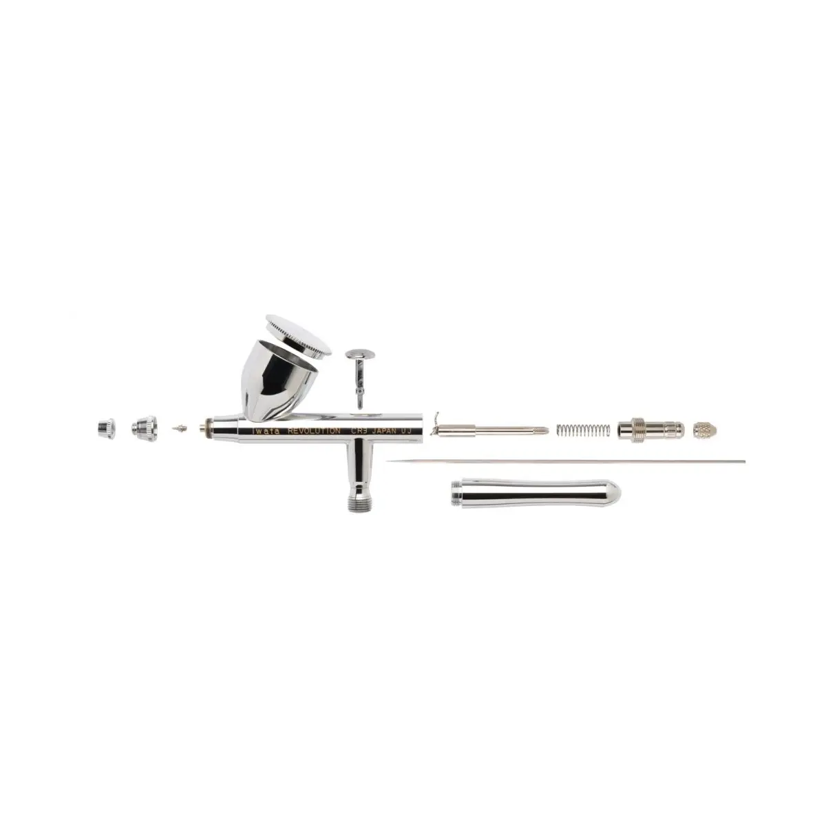 Iwata Revolution Series airbrushes deliver soft, effortless coverage and quality atomization at low air pressures making them a great choice for fine spray and general purpose airbrushing.