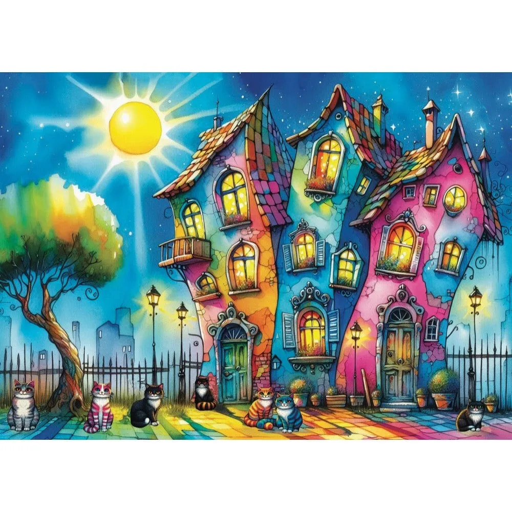 MEOWTIFUL NIGHT JaCaRou Puzzles are excellent quality and have a beautiful gloss finish. The pieces fit together perfectly and the colours are vibrant and clear. Specification - Dimensions : 27 in x 20 in - No. of pieces : 1000 PCS