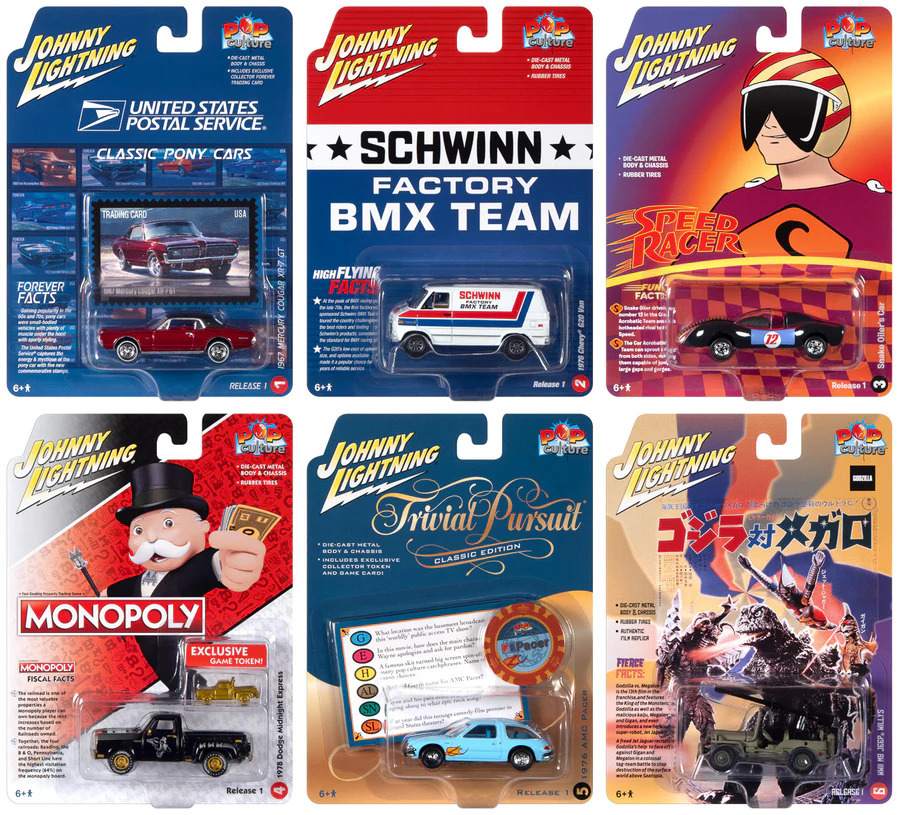 Johnny Lightning's all-new Pop Culture series features graphics and themes of popular pastimes like movies, television, games and cultural trends!