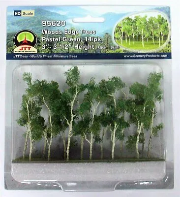 DETAILSThe Woods Edge Trees Collection. The addition of trees and forests to a model railroad or any scale landscape will easily allow for an extra level of realism to the project. This comes in "Pastel Green" colour in N-scale, 2" to 2-1/2" high, 20 per pack.