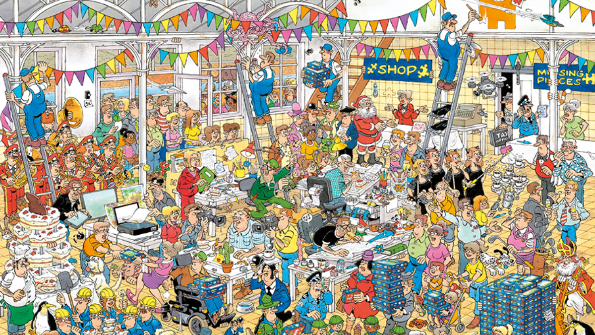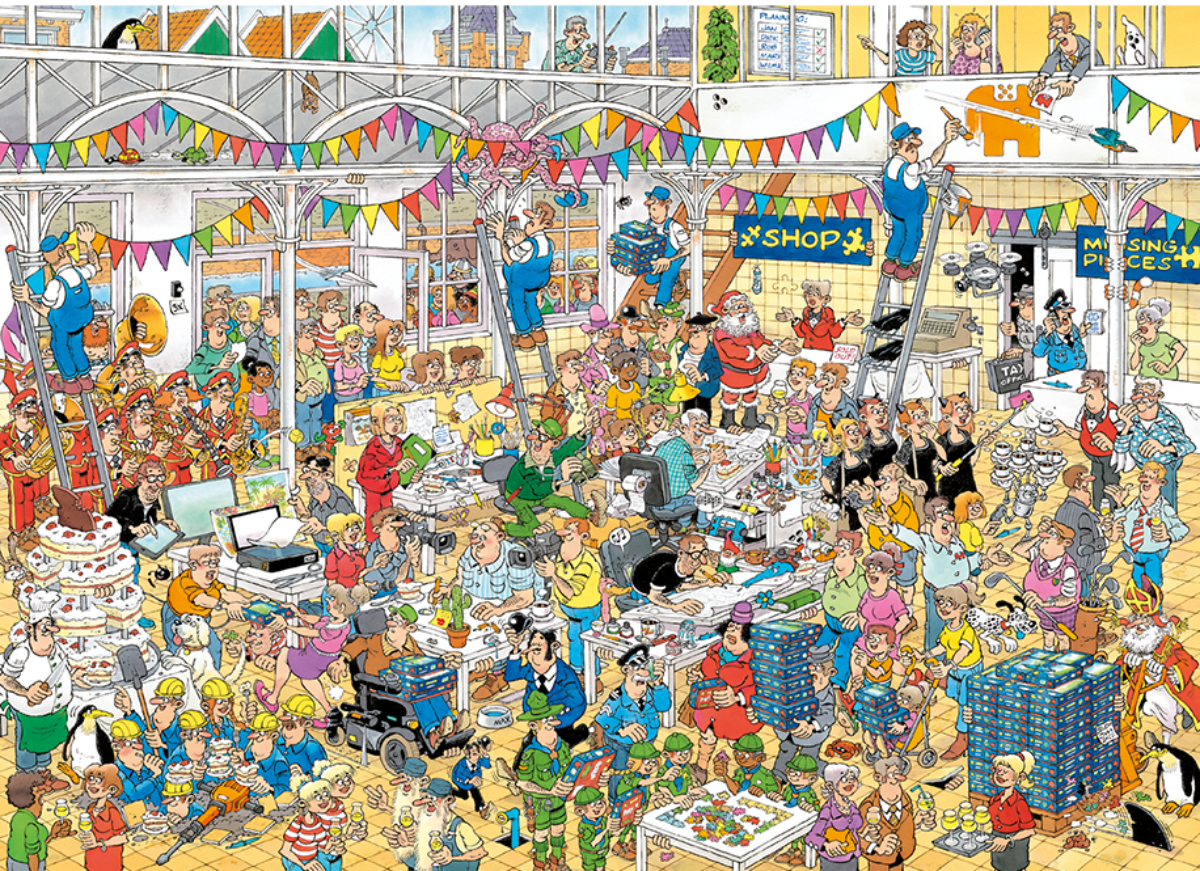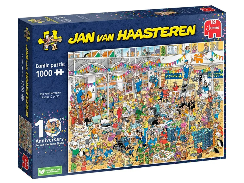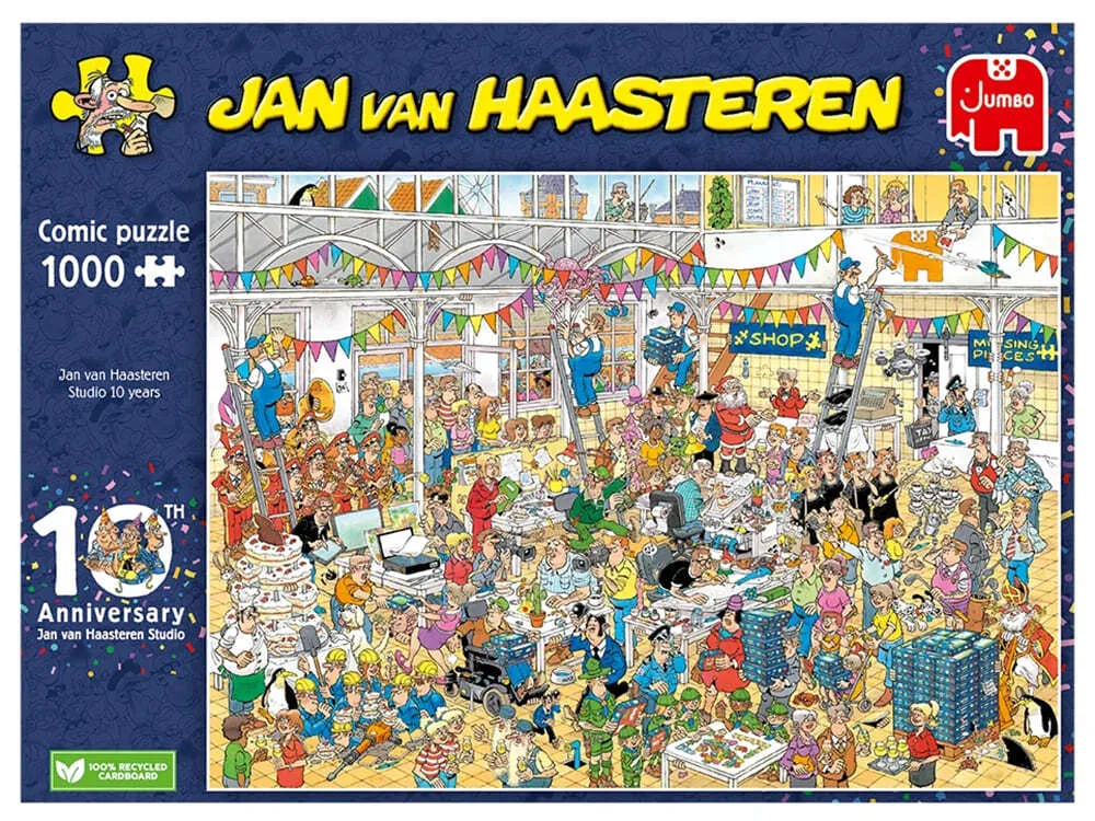 Jan van Haasteren Studio 10 Years 1000 Piece Puzzle by Jumbo A humorous 1000 piece puzzle celebrating 10th Anniversary of Jan Van Haasteren Studio