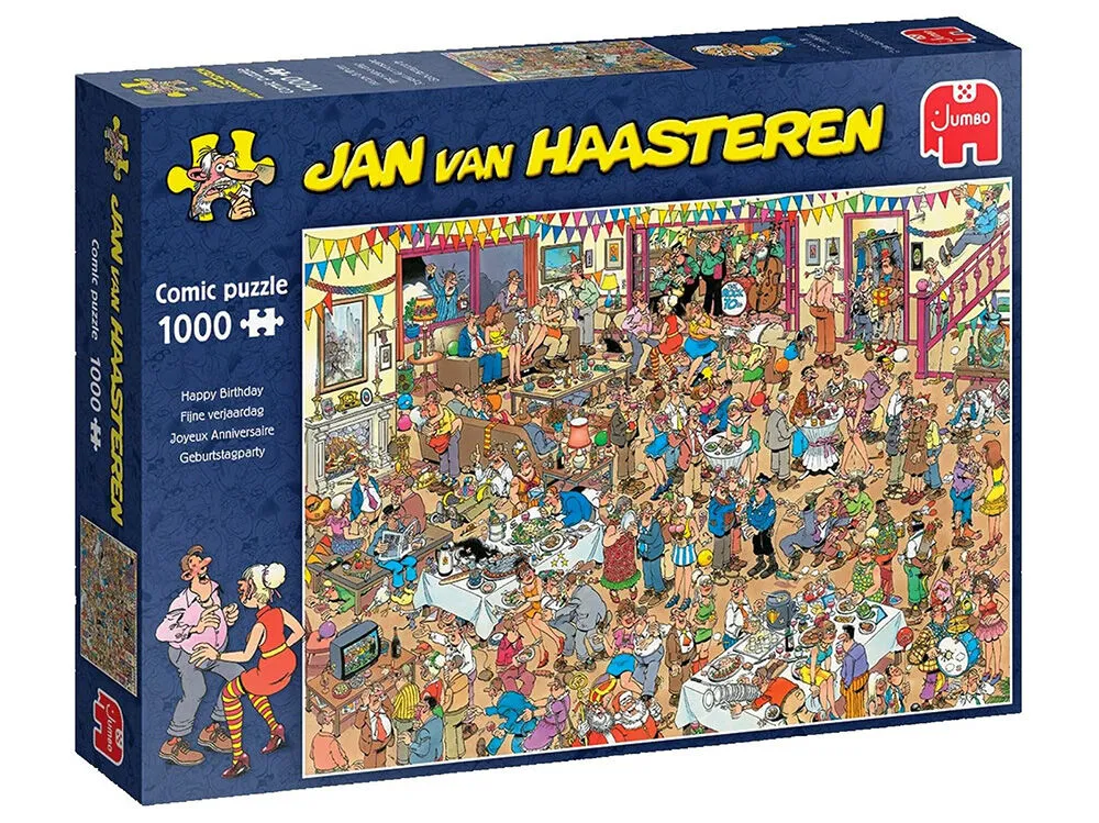 Jan van Haasteren puzzles are puzzles with lots of colour and details. For decades, Jan van Haasteren has been drawing humorous images that always surprise and encourage laugh. Real fans know the special features of Jan van Haasteren and look for the shark fin, Saint Nicholas, hands, teeth and self-portrait of Jan.