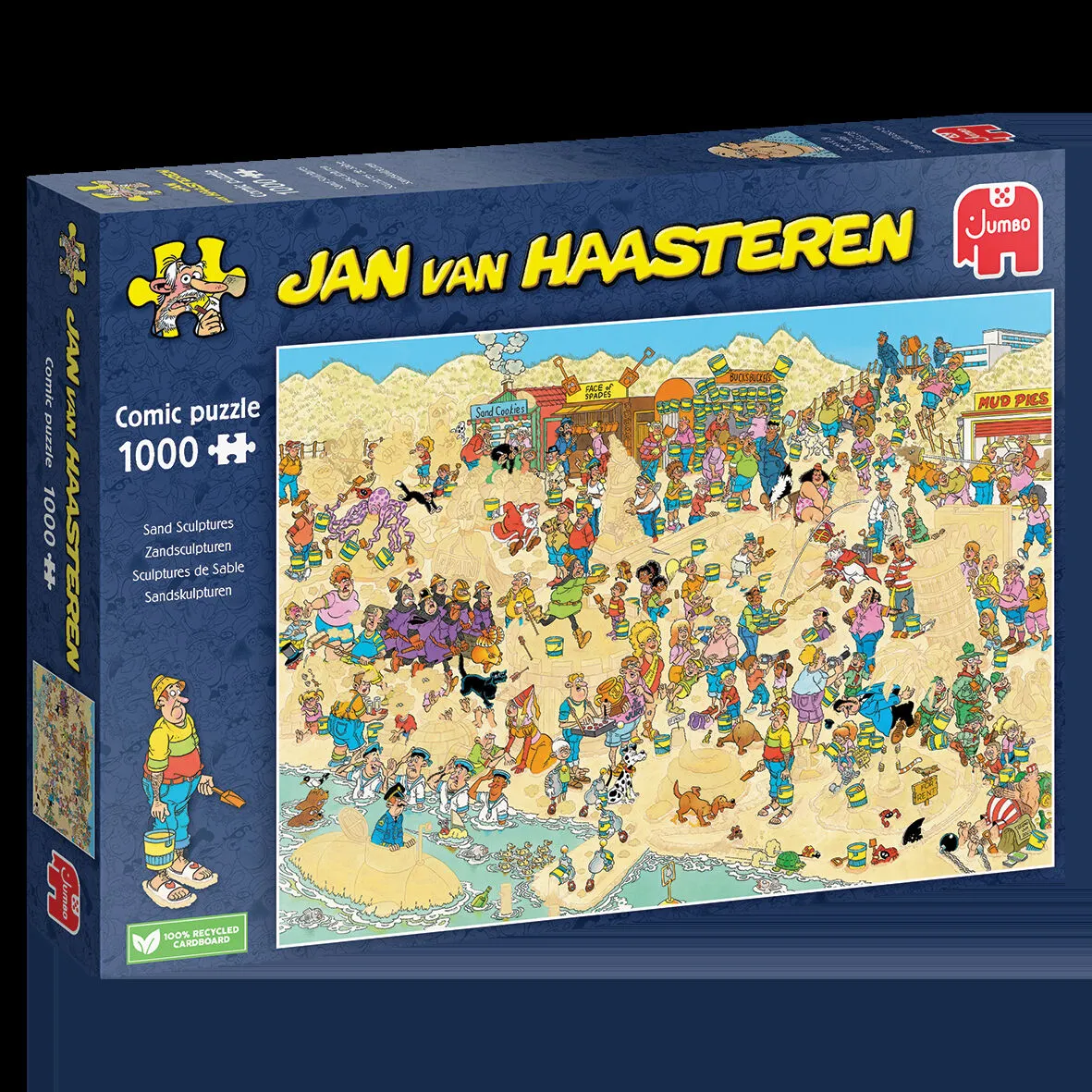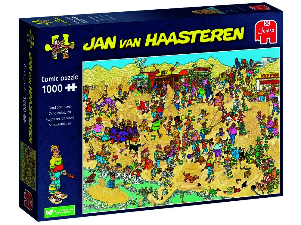 Dive into the sandy shores with this delightful 1000-piece Jan van Haasteren puzzle celebrating the art of sand sculptures! Watch as creative beachgoers craft imaginative masterpieces along the coastline, complete with all the quirky characters and comedic chaos you'd expect from JVH's brilliant illustrations. At 68 x 49cm, it's the perfect size for hours of puzzling fun as you uncover hidden details, familiar faces, and trademark humour scattered throughout the vibrant beach scene. From towering sand castles to hilarious mishaps, every piece reveals another layer of seaside silliness. Perfect for adults who love beach vibes, artistic flair, and puzzles bursting with personality and laughter. Get ready to build more than just a puzzle-you'll construct memories of pure fun!