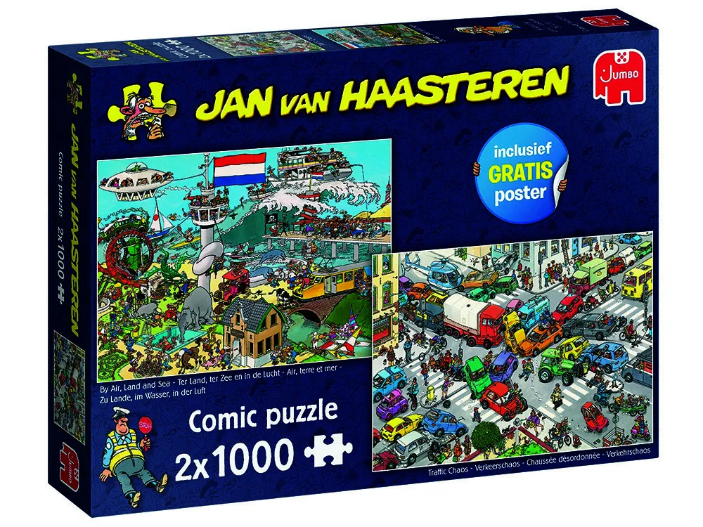 Jan van Haasteren puzzles are puzzles with lots of colour and details. For decades, Jan van Haasteren has been drawing humorous images that always surprise and encourage laugh. Real fans know the special features of Jan van Haasteren and look for the shark fin, Saint Nicholas, hands, teeth and self-portrait of Jan. Size: 68 x 49cm Ages: Adults