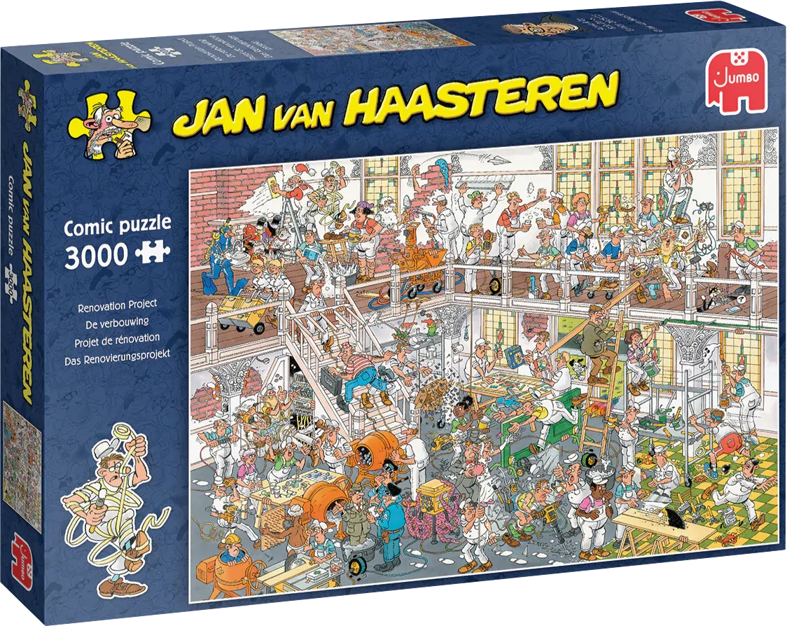 ‘Renovation Project' is the title of this Jan van Haasteren 3000 piece jigsaw puzzle and, as with all of his illustrations, you are sure to find this puzzle extremely enjoyable while laughing at all of the individual illustrations. But as with every Jan van Haasteren puzzle, not everything is going to plan with characters and situations that many of us would all find all too familiar. Puzzlers can find Jan's humour in even the smallest details of the puzzle image.