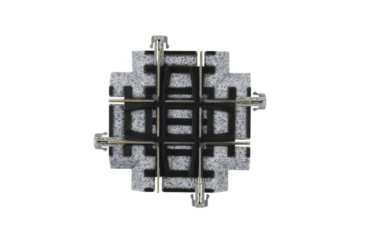 2-401 (HO) Crossed track X90 The 90 ° cross line (X90) for improving the layout plan will appear on the KATO (HO) unitrack line system, which is well received as the definitive version of the track system with track. This makes it easier to use (HO) Unitrack and extends the scope of layout planning. Main features The 90 ° cross line is a cross line where two lines cross at right angles to each other. Since the central part is also energized, it can pass smoothly at low speed. Endless can be set to a figure of 8, and long run operation can be enjoyed in a small space. Avoiding steep slopes by using planar crossings instead of grade crossings. When two units are connected, it will be 60 mm, which is the basic double-track distance of the HO Unitrack. One pack Optional option (HO) Unitrack Master Plan Set Part Number: 3-103 (HO) Unitrack Line Unitrack line related products (HO / N common) Uni-Joyner Product number: 24-815 Insulated joiner part number: 24-816 Terminal Uni-Joyner Product Code: 24-818