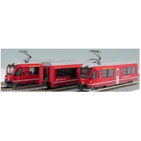 The dual gauge ABe 8/12 trains, built in Switzerland by Stadler Rail AG, were delivered between 2009 and 2011. They are used mainly on Rhaetian Railway routes with steep inclines. One set holds the World Speed Record for a Metre gauge train at 139 km/h. but can also run at slow speeds on tram tracks in cities.