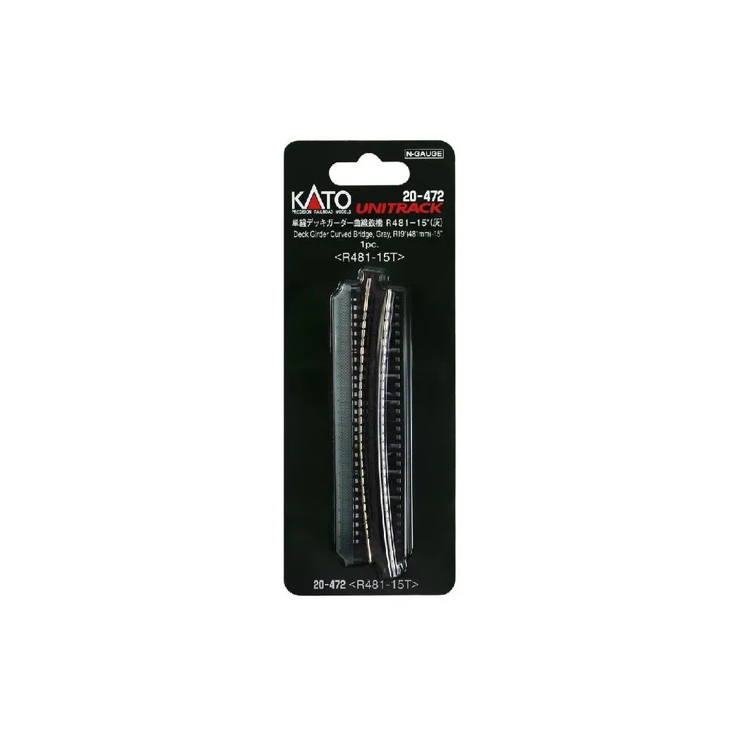 KATO N UNITRACK DECK GIRDER CURVED BRIDGE 481MM 15DEG GREY