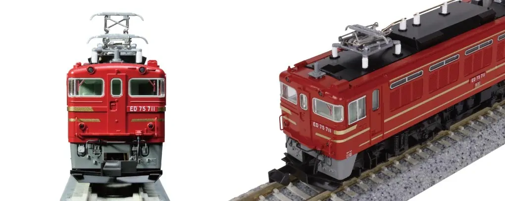 The ED75 was introduced in 1963 as the JNR's standard AC electric locomotive. Despite being a D-type, it is a dual-purpose freight/passenger locomotive with tractive force comparable to that of an F-type DC electric locomotive. 91 700-series locomotives were manufactured from 1971 to coincide with the electrification of the Ou Main Line between Akita and Aomori. Running along the Japan Sea coastline, the ED75 boasts a clean rooftop design, including the inclusion of high-voltage equipment inside the car for resistance to salt damage, cold, and snow, and a cross-type pantograph with a low frame for reduced snow accumulation. Toward the end of the JNR era, some of the cars were specially painted for use on the "Orient Saloon" Joyful Train, leading the way for other Joyful Trains, Blue Trains such as the "Akebono," and the "Orient Express '88.