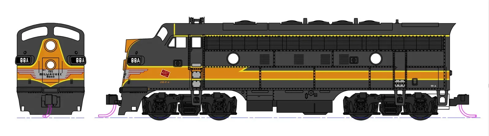 Kato #106-0429 N EMD F7A + F7B Milwaukee Road 2-Locomotive Set #88A & #88B Prototype Information: The F-Unit is probably the most recognized diesel locomotive in North American history. It was found on railroads from East to West and North to South. Similar in appearance to its predecessor, the EMD F3, the EMD F7 was a 1500 hp multi-purpose locomotive.
