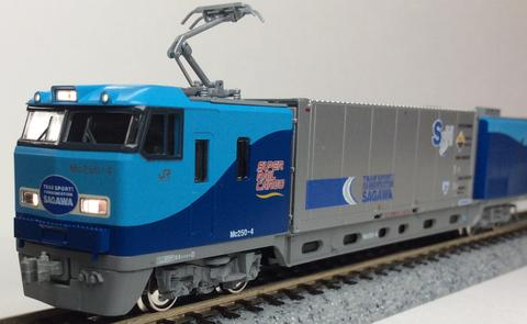 The M250 series Super Rail Cargo is the first distributed-power express container train developed with the aim of reducing environmental impact (reducing CO2 emissions) and high-speed transport of small-lot consolidated cargo such as parcel delivery. In recent years, U50A containers have been loaded instead of the previous U54A containers, and the design of the headmark displayed on the front has also been changed to a simpler one.