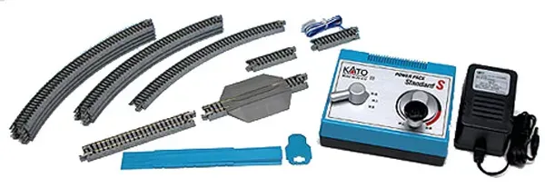 The power pack uses a high output (1.2A) "Power Pack Standard SX" and "AC adapter for starter set" The attached plan variation guide is a treasure trove of track plans.