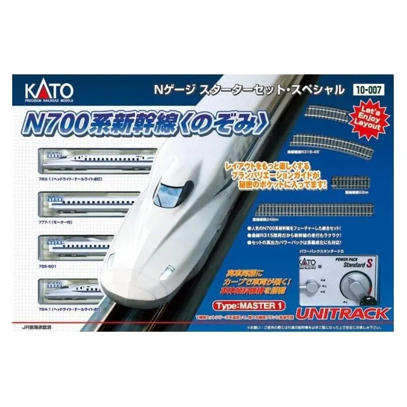 This is a complete N gauge Kato starter kit featureing the N700 Nozomi high speed train, track and a power pack. An ideal set to start you kato collection.