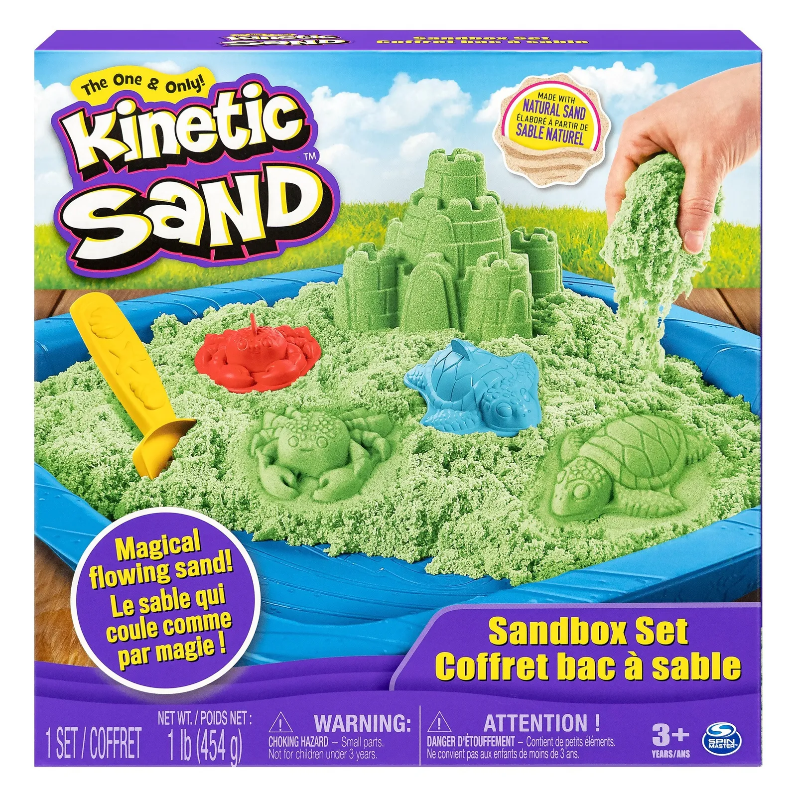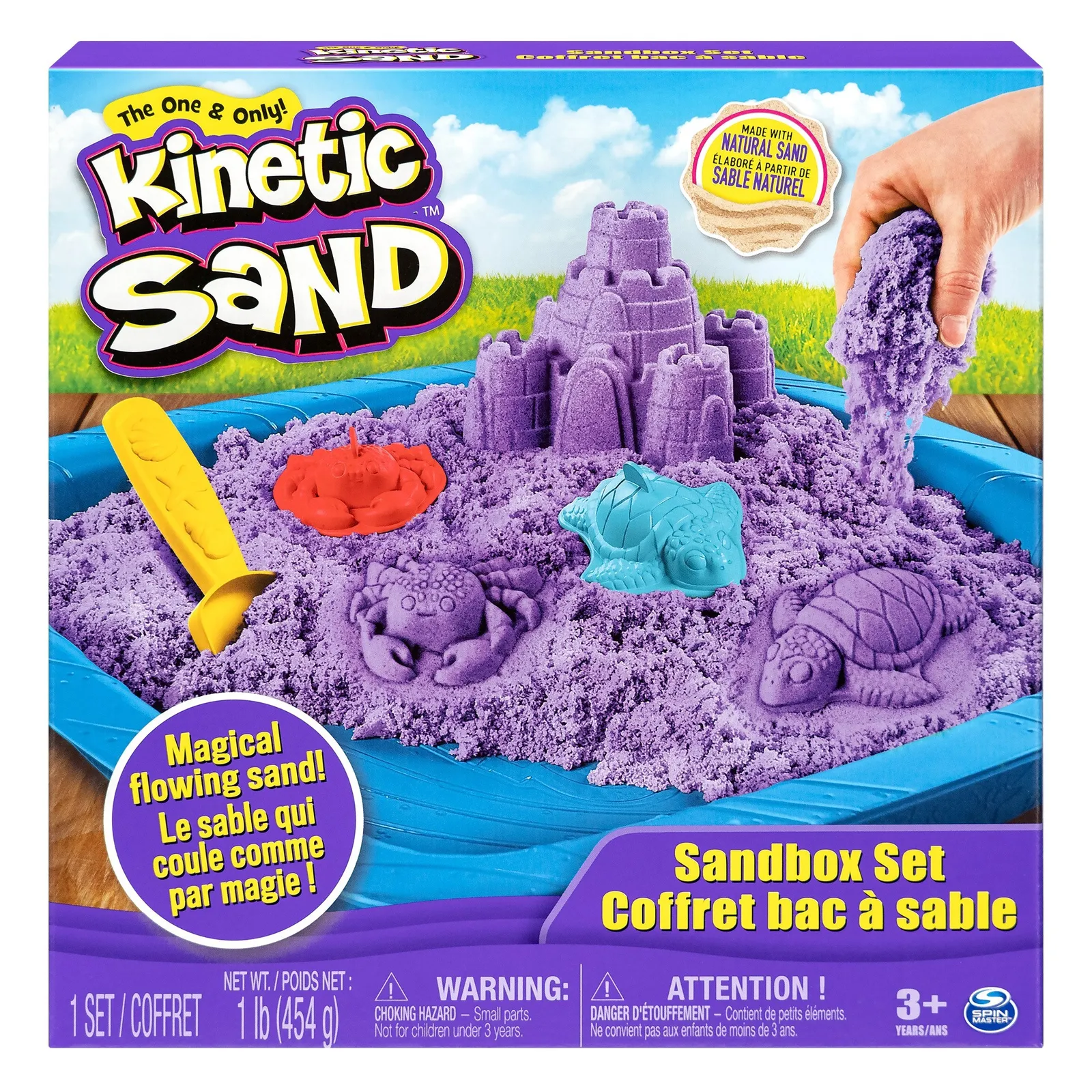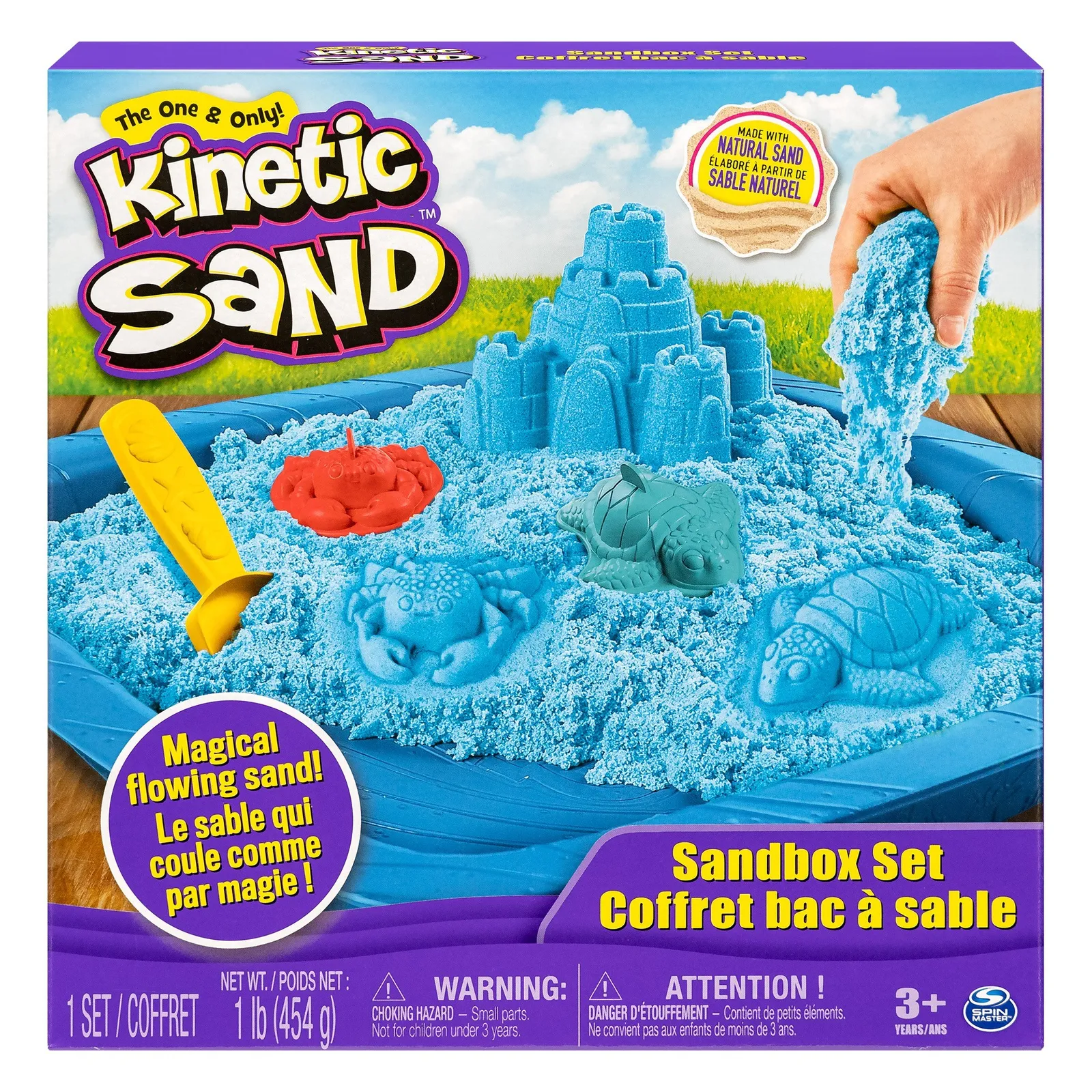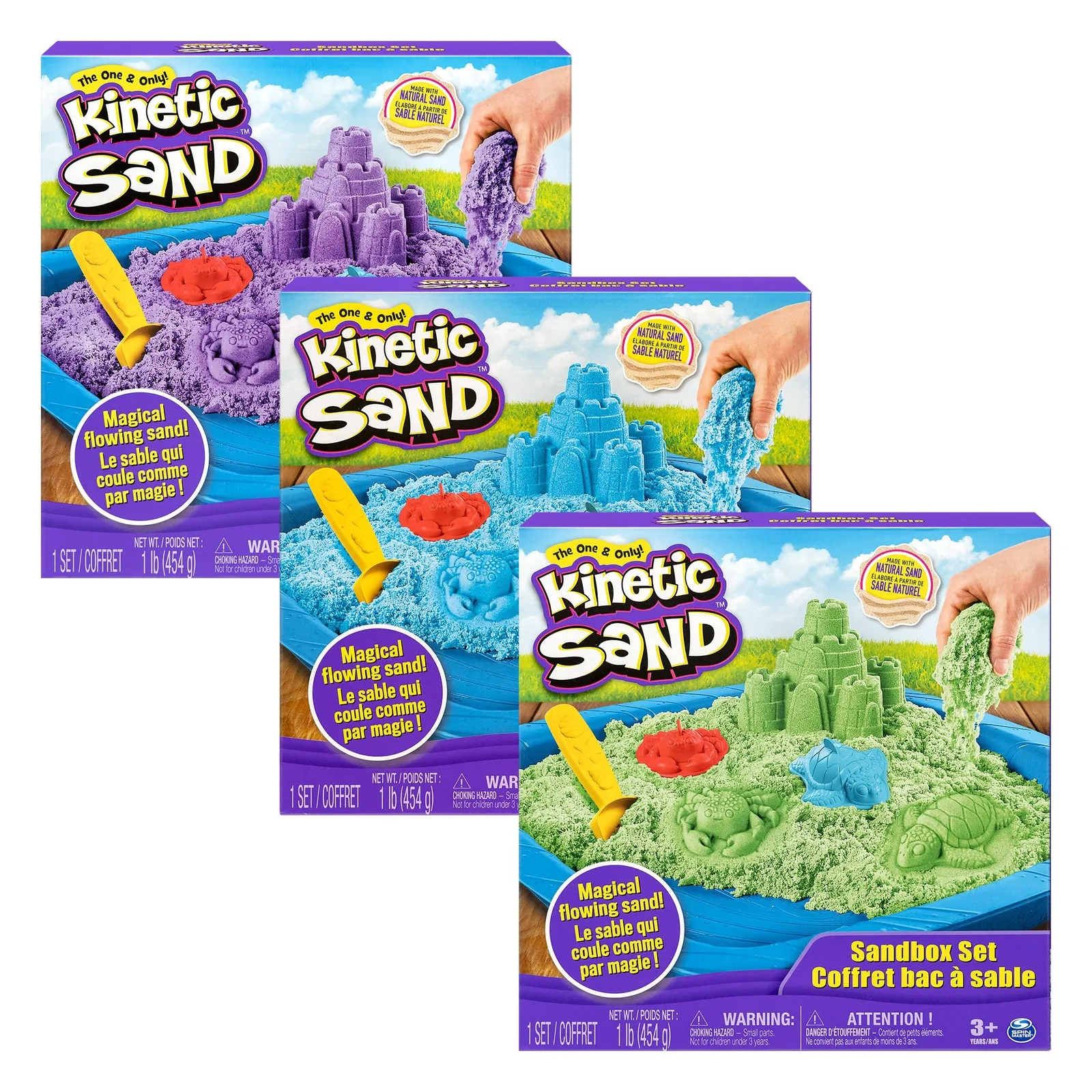 Bring the Beach home with the Kinetic Sand – Sandbox Set! Inspire creativity and beachy sand fun with the Kinetic Sand – Sandbox Set! Children can create sand castles, sand figures and so much more using the one and only – Kinetic Sand! This magical flowing sand never dries so that kids can use it time and time again. The Kinetic Sand Sandbox Set includes a sandbox tray for contained play, with moulds and tools to help kids shovel, scoop and sculpt sand creations wherever they please! Kinetic Sand is made with natural sand, is easy to clean and is wheat, gluten and casein free, making Kinetic Sand fun, safe and enjoyable for all ages! Feel the joy with the Kinetic Sand Sandbox Set! Features: MAGICAL FLOWING SAND: Feel the difference with Kinetic Sand! Kinetic Sand is the original magical, mouldable and mesmerizing sand. The unique formula makes Kinetic Sand stick together so it easily shapes and molds. Once you pick Kinetic Sand up, you won’t be able to put it down. Let it flow through your hands – it’s so satisfying! SANDBOX TRAY FOR INDOOR PLAY: Play with the Sandbox Set anywhere indoors with the included tray and create your own sandbox adventures all year long. Kinetic Sand stimulates creativity and never dries out, so you can create again and again! 454 g OF KINETIC SAND & 3 MOULDS: Mould turtles, castles and crabs with 454 g of Kinetic Sand and use the shovel tool to help dig, scoop and flow. The Kinetic Sand Sandbox Set is perfect for creative and imaginative play and is a great gift for kids aged 3 and up. Contents: 1lb (454 g) Kinetic Sand, 3 Moulds, 1 Tool, 1 Sandbox Tray and 1 Instruction Guide. Customers: Please choose preferred coloured sand set prior to adding to cart. Suitable for children and adults 3 years+