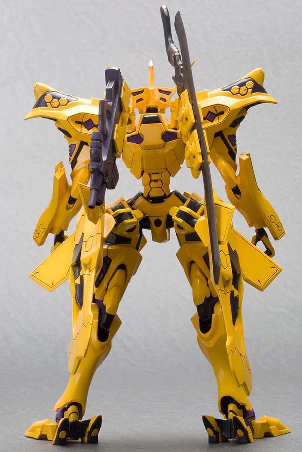 The golden yellow TAKEMIKADUCHI TYPE-00F, piloted by Takamura Yui, the heroine of the 2012 Muv-Luv Alternative Total Eclipse anime series, is recreated in 1/144 scale, following its release in NON-scale and D-Style.