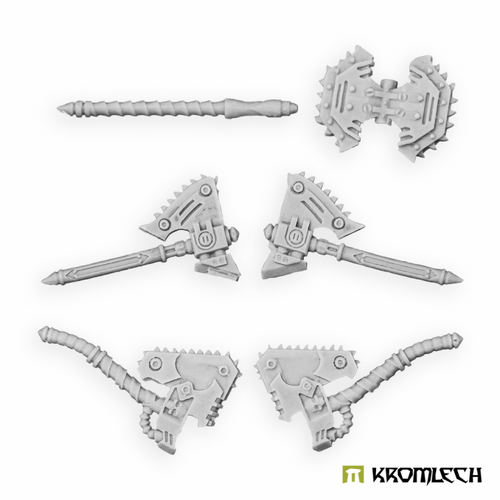 This set contains five Legionary Chain Axes. There are three unique patterns - you get two of each single-bladed axe and one double-bladed.