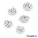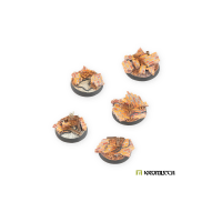 This set contains five 32mm round bases with a ruined old town theme.