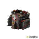 Essential in every line of fortifications, towers take the form of a larger, covered in heavy plates and massive spikes, parts of the wall. Half a dozen Orcs can take a firing stance on the roof, protected by a crude cover of cracked concrete and sharpened metal plates.
