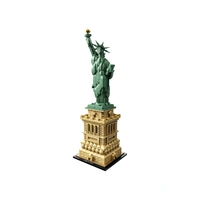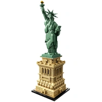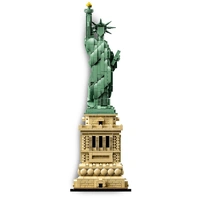Celebrate a monumental blend of architecture and sculpture with this LEGO® Architecture 21042 The Statue of Liberty set. America's iconic symbol of freedom stands more than 305 feet above Liberty Island in New York harbor, welcoming seafarers from around the globe. This impressive LEGO interpretation faithfully reproduces the monument's harmonious blend of sculpture and architecture with its intricately detailed shield-lined pedestal, brick detailing and columned balconies. The beautifully crafted Lady Liberty statue features a flowing robe, broken shackles, 7-ray crown, iconic tablet and an upraised arm bearing a golden torch. Finished with an authentic sand-green and beige color scheme, and a decorative nameplate, this model delivers a highly satisfying building experience to all with an interest in architecture, travel, history and design, and makes a truly symbolic centerpiece for the home or office. LEGO® Architecture interpretation of the real-world architectural landmark, the Statue of Liberty.