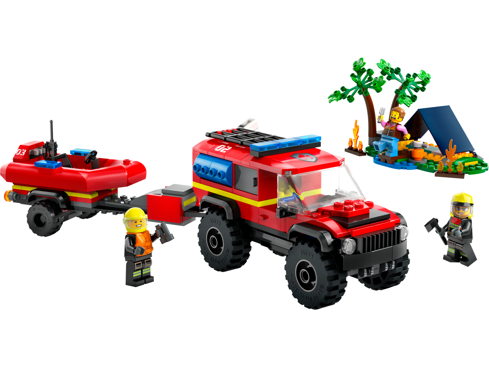 • Toy rescue vehicles playset - Double up the excitement with a fun combo of toy off-road fire rescue vehicles with this LEGO City 4x4 Fire Truck with Rescue Boat for ages 5 plus
