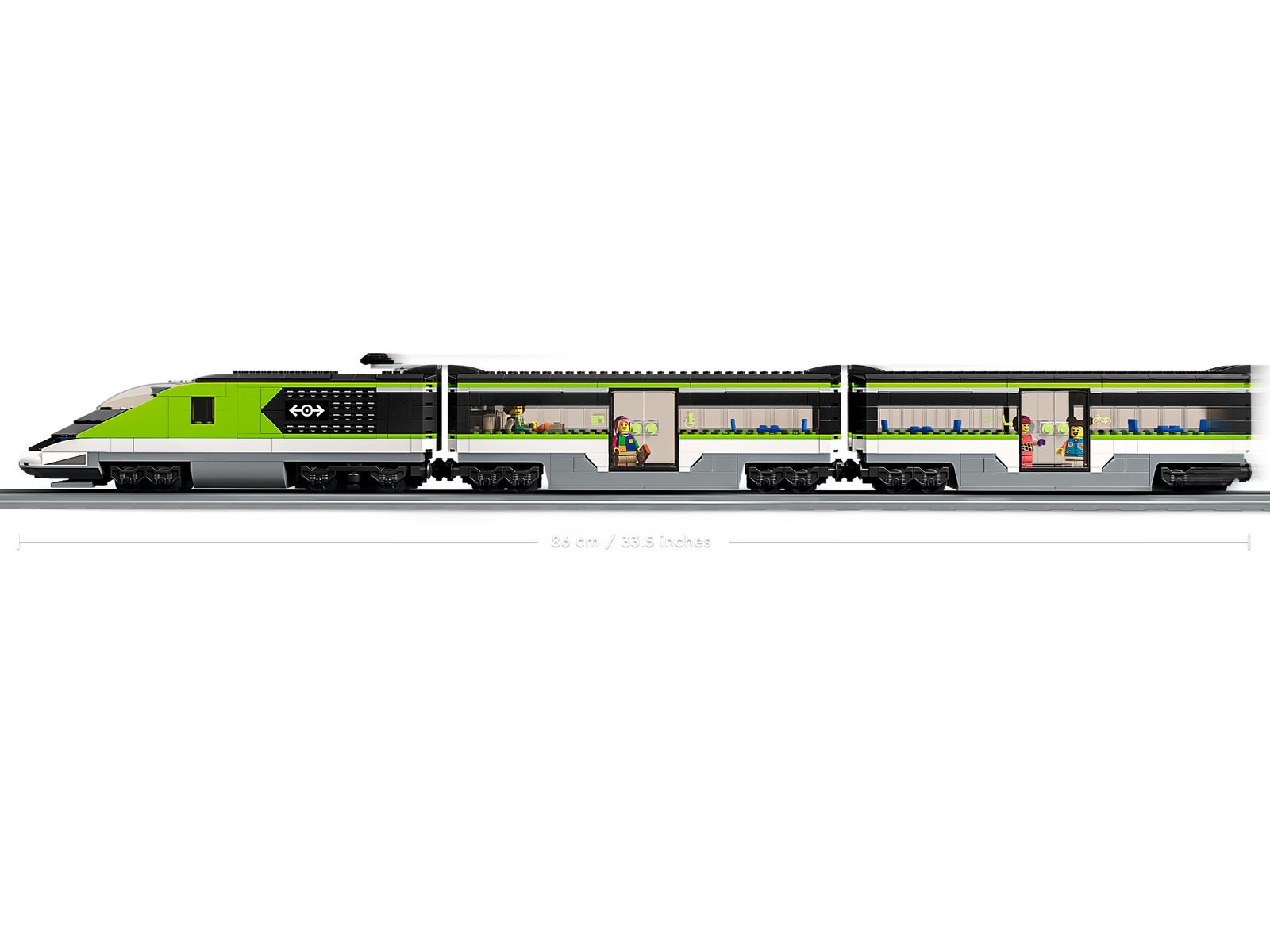 - Dimensions – When built, the LEGO® City Express Passenger Train measures over 3.5 in. (10 cm) high, 33.5 in. (86 cm) long and 2 in. (5 cm) wide