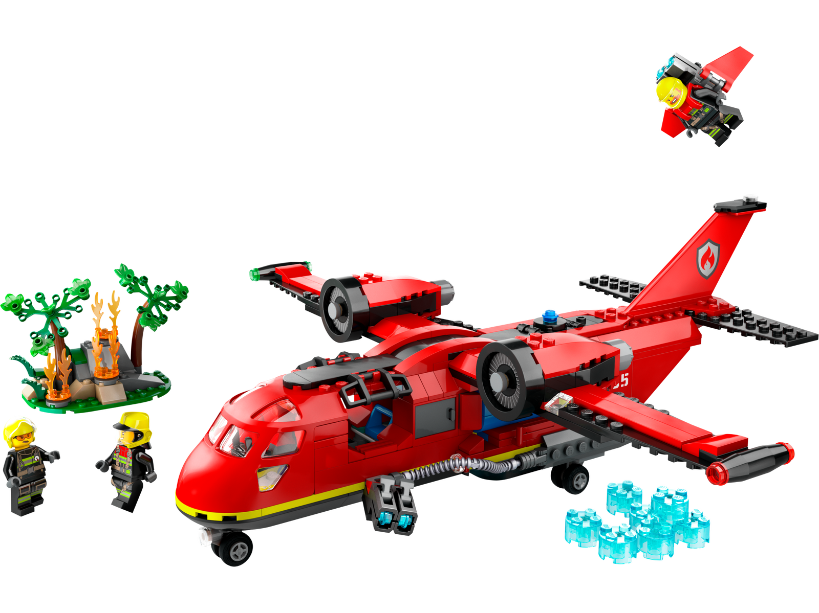 • What's in the box? - This emergency rescue toy playset has everything kids need to build a fire plane and wildfire scene, with pilot, extinguisher operator and jetpack firefighter minifigures