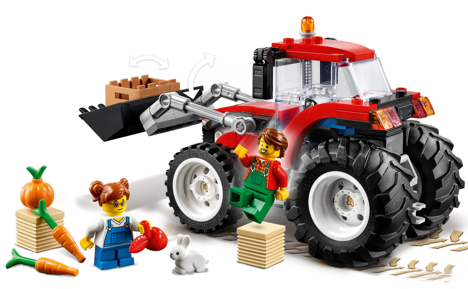- This LEGO® City Tractor (60287) toy has huge rear tires, a tipping loader bucket, raisable boom and a minifigure cab. Kids can combine it with other LEGO toy playsets for fun play and cool displays.