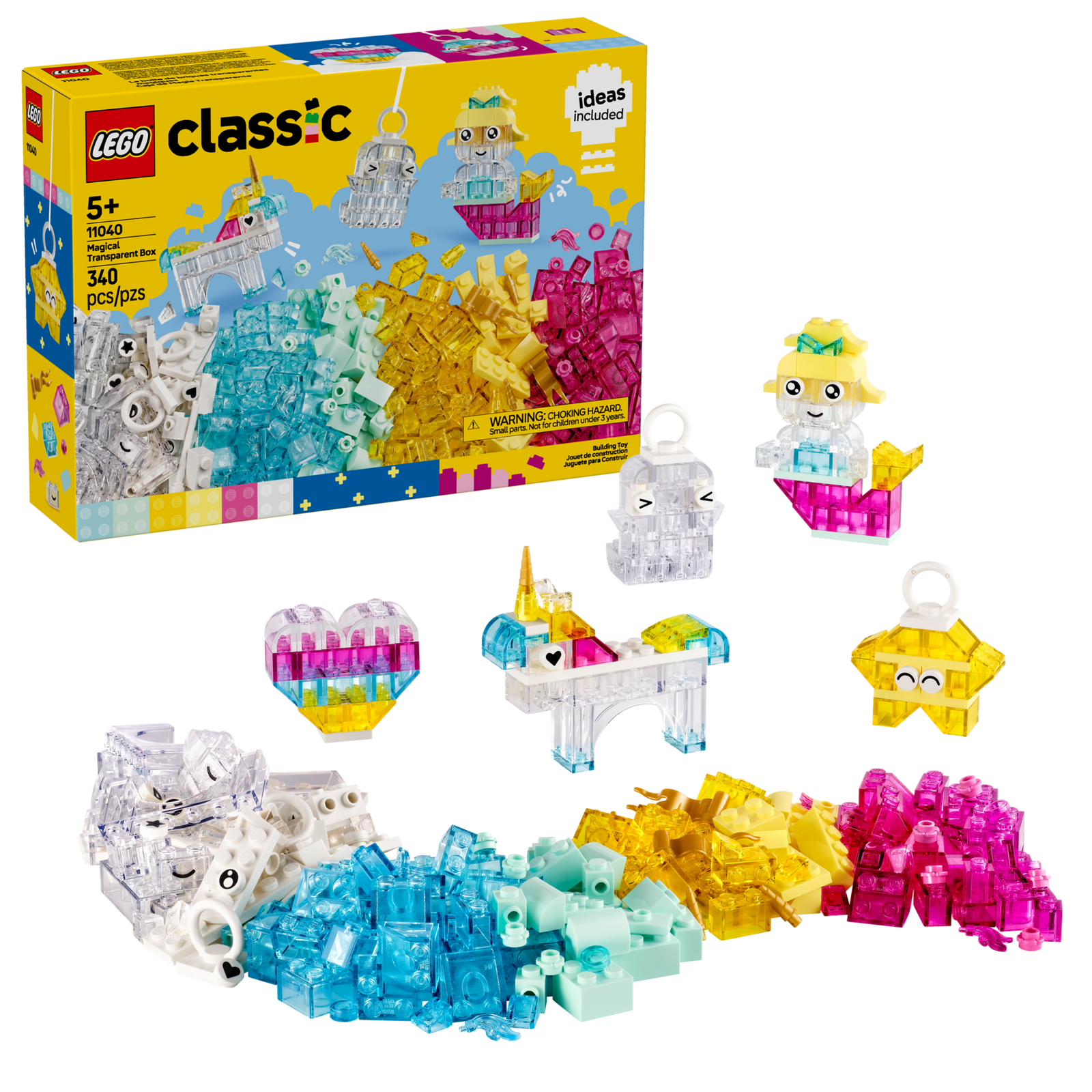 LEGO® Classic Magical Transparent Box (11040) will provide creative fun that lasts and lasts. With 340 colorful bricks, many of them transparent, plus a variety of special elements, this build-and-display set inspires kids’ creativity with enchanting models and endless imaginative play.