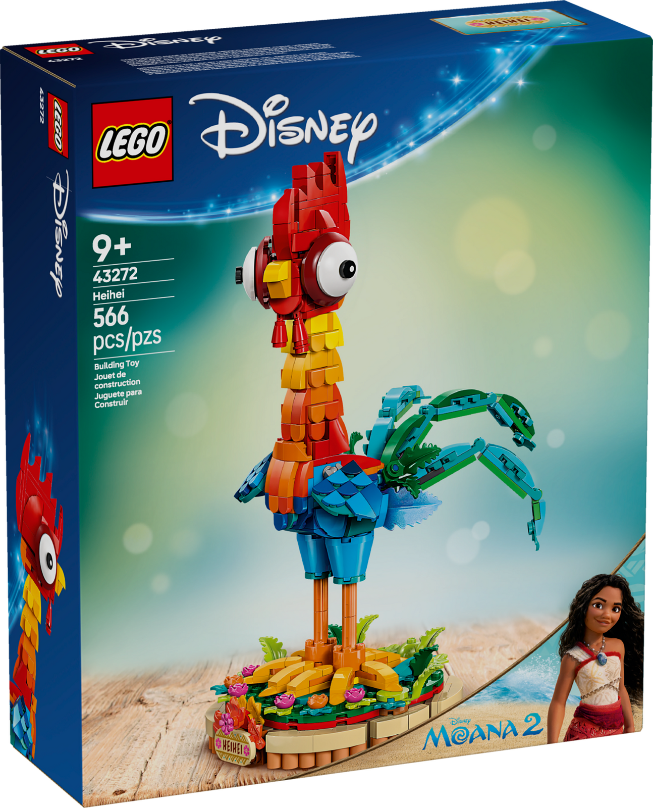 Bring the fantasy and fun of Disney’s Moana and Moana 2 into the real world with this posable Heihei (43272) LEGO® | Disney Moana 2 building kit toy. Animal fans, movie lovers and kids aged 9 and up will enjoy creating the colorful chicken companion buildable model, with a rotating head, posable wings and tail feathers, then standing him on his feet or placing him on the stand, complete with decorative flowers and a nameplate.