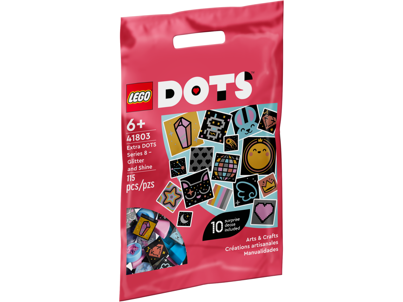 - Design, redesign, do it again Inspire fans of creative self-expression with this LEGO® DOTS Extra DOTS Series 8 Glitter and Shine (41803) decoration kit. The fun starts when they open the bag