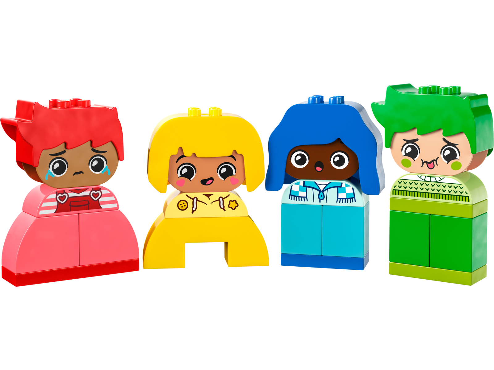 - Creative learning toys - By stacking the colored toy bricks, toddlers match or contrast the characters' wigs then choose how the LEGO DUPLO people are feeling with the expression bricks