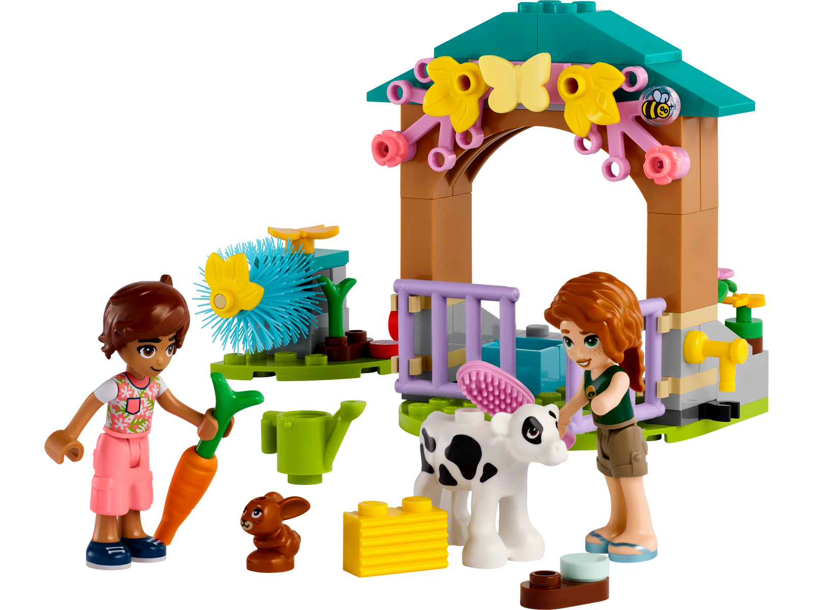 • LEGO Friends Autumn's Baby Cow Shed set - Includes a buildable cow shed, 2 mini-dolls, a cow toy, a bunny and lots of animal accessories for girls, boys and kids aged 5 plus