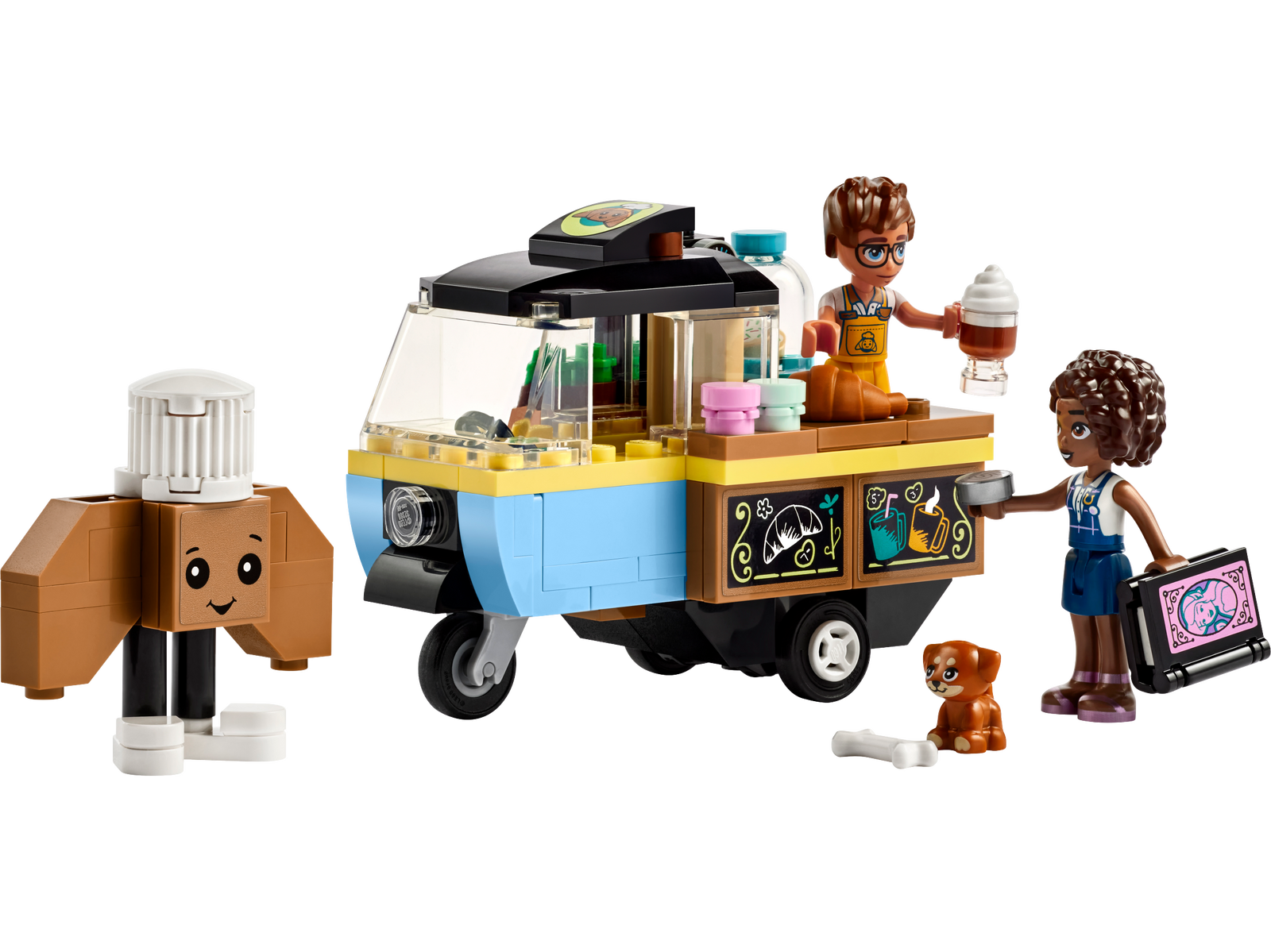 • LEGO Friends Mobile Bakery Food Cart set - Includes 2 mini-dolls, a dog figure, a cart and lots of toy bakery accessories for girls, boys and kids aged 6 plus
