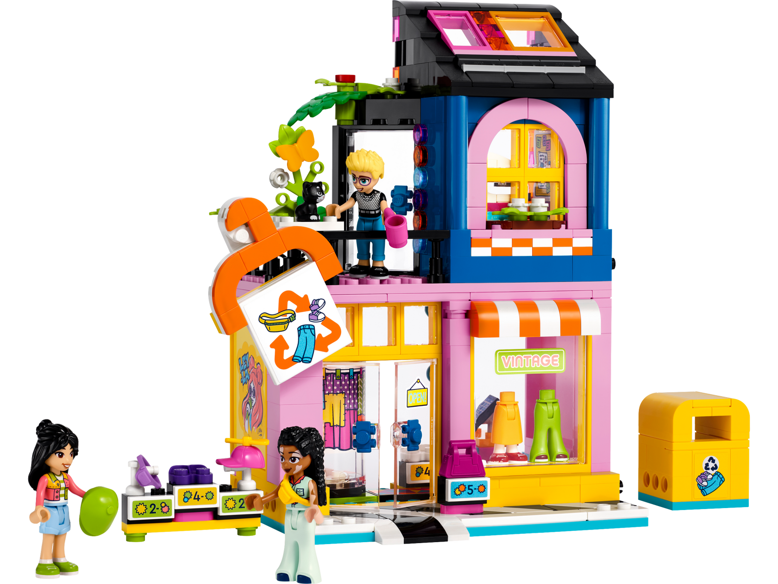 • LEGO Friends Vintage Fashion Store set - This social-emotional toy includes a buildable shop with workshop, 3 mini-dolls, a cat toy figure, plus lots of fashion accessories for kids aged 6 plus